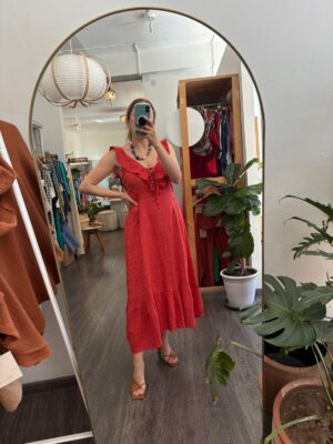 Vestido lino lunares mostaza