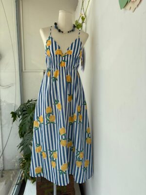 Vestido lino lunares verde