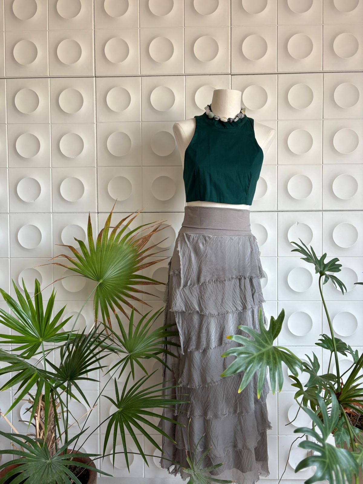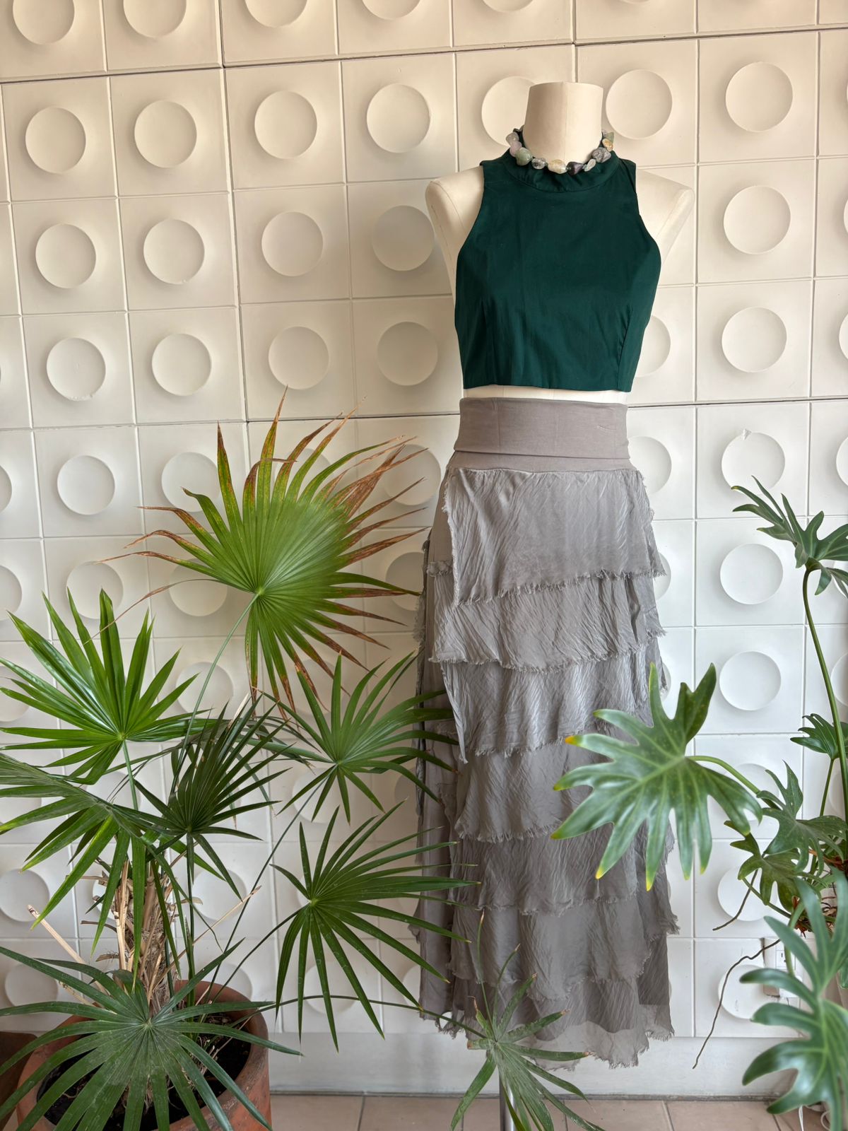 Falda larga con paneles en seda , se ajusta de cintura tela spandex , es unitalla