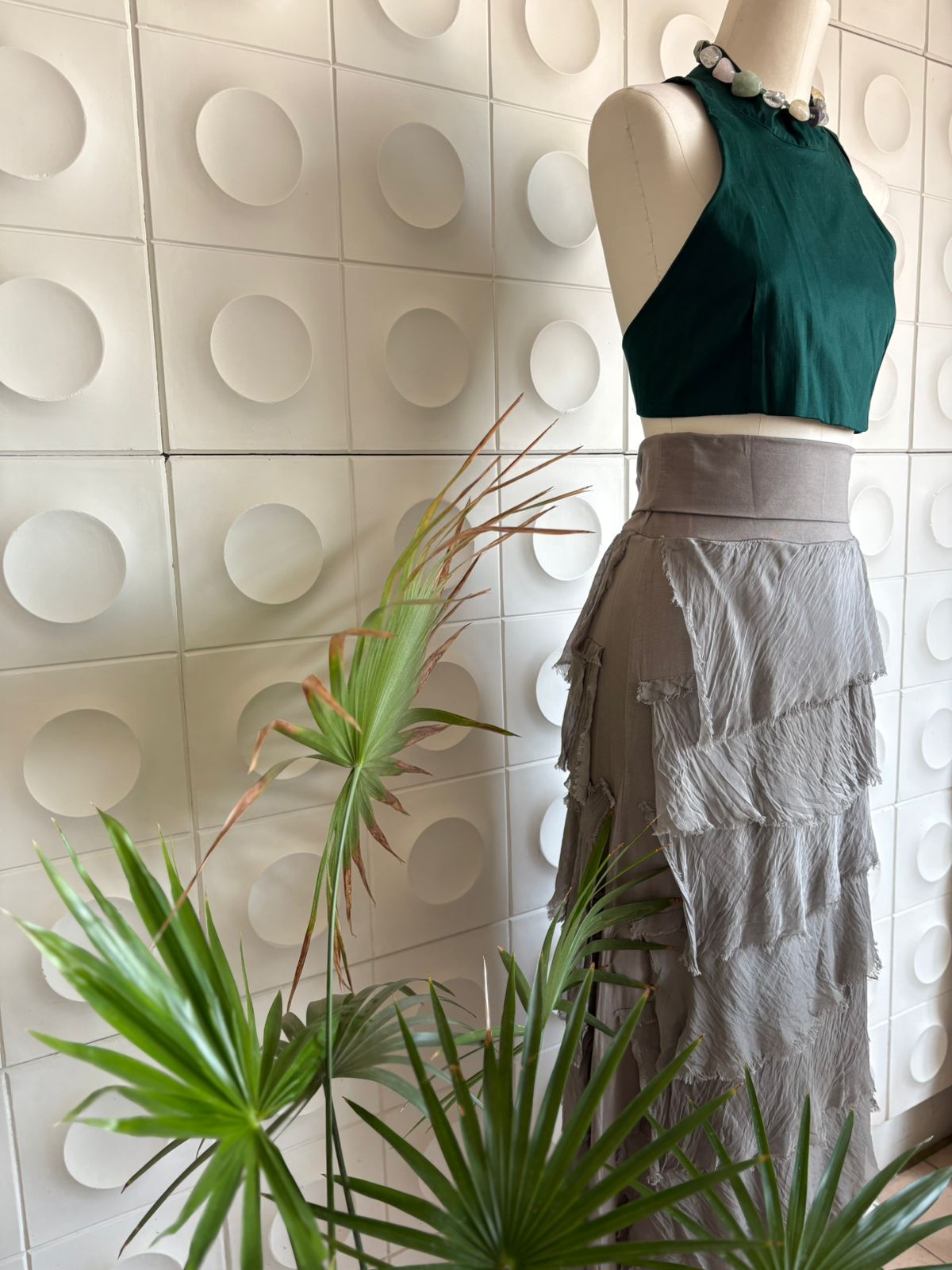 Crop top en color avena , lino 100%, tirantes ajustables, y en espalda resorte para ajustar el ancho de espalda.
