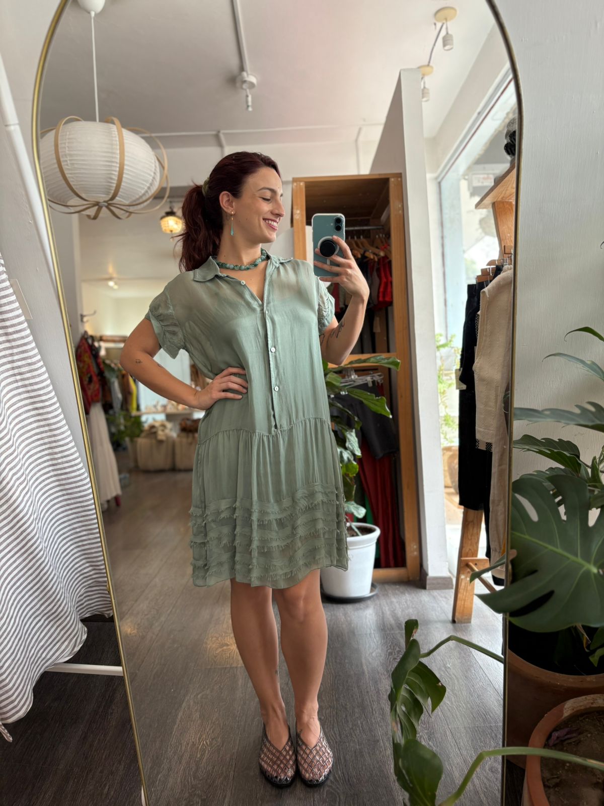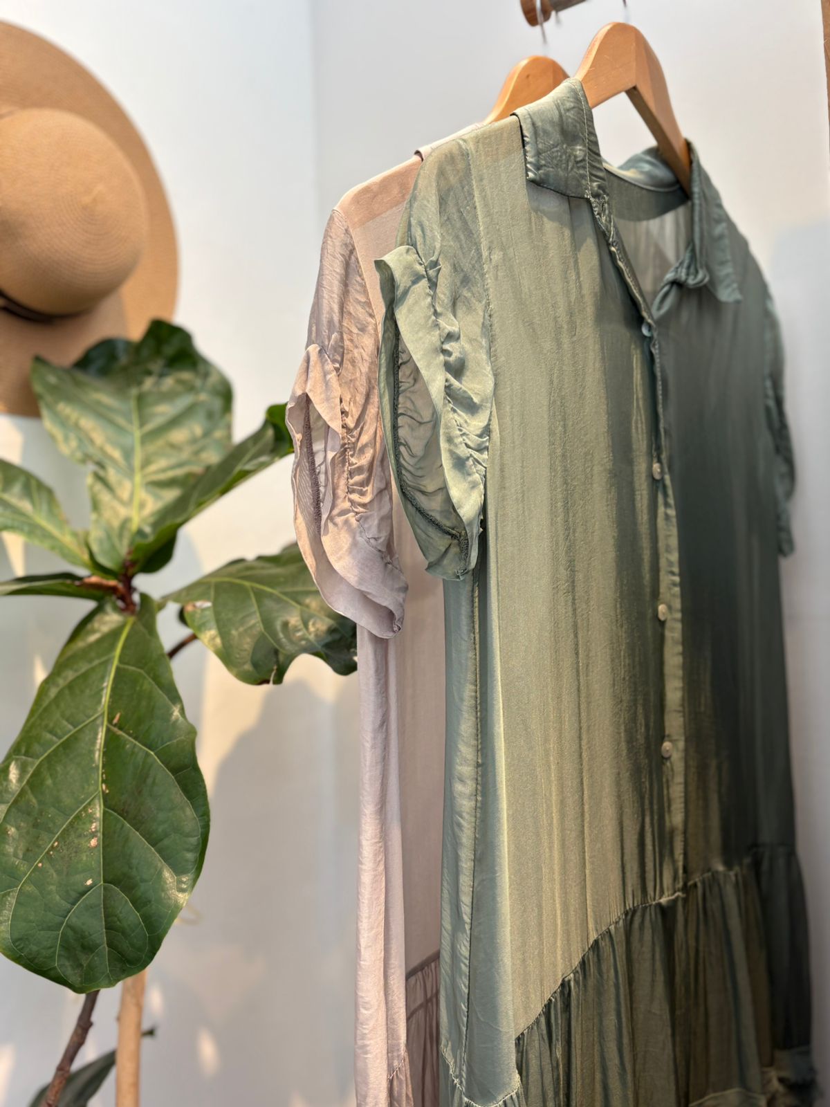Pantalon en color avena, resorte en cintura, ancho y olan en piernas, queda a la cintura alta
