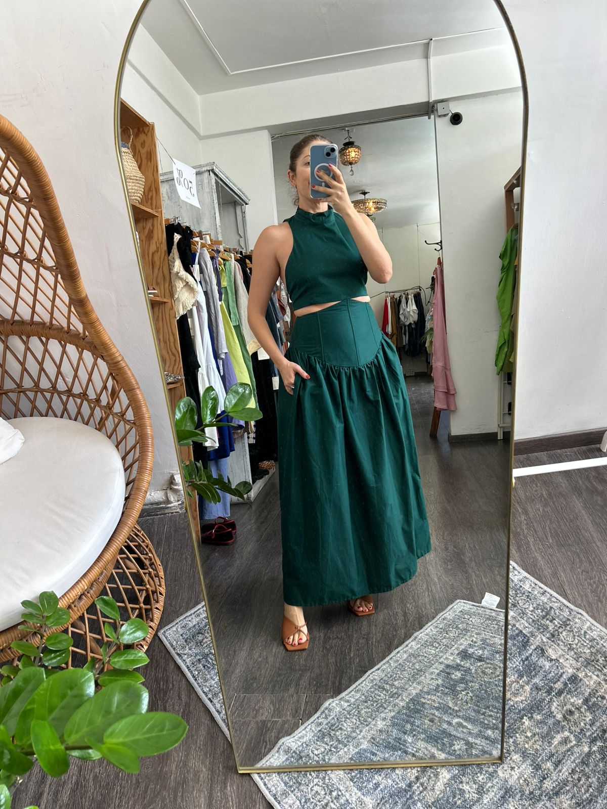 Pantalon en color avena, resorte en cintura, ancho y olan en piernas, queda a la cintura alta