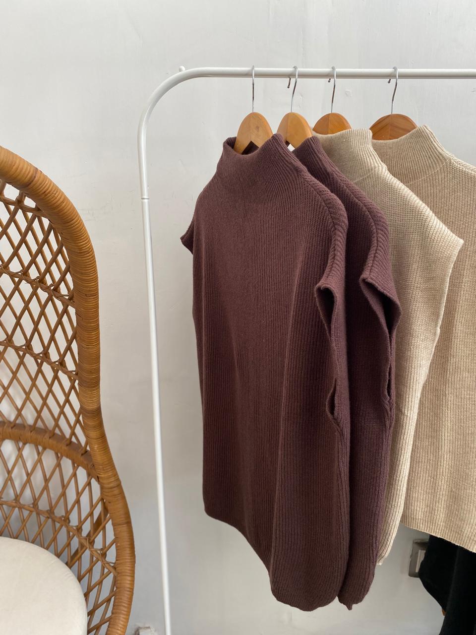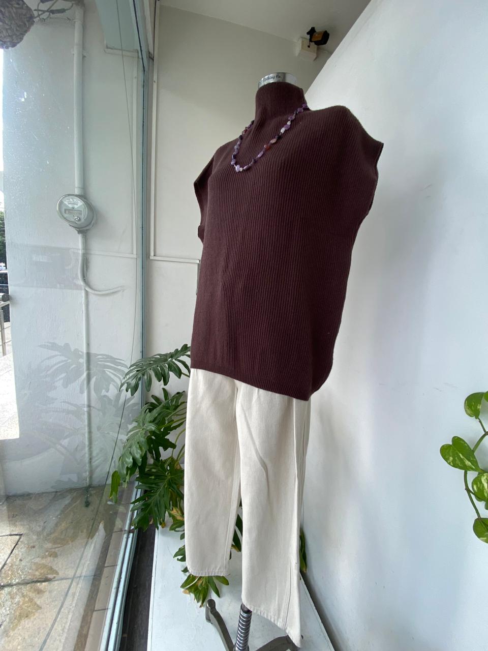 Blusa tejida en color kaki o café , es unitalla
