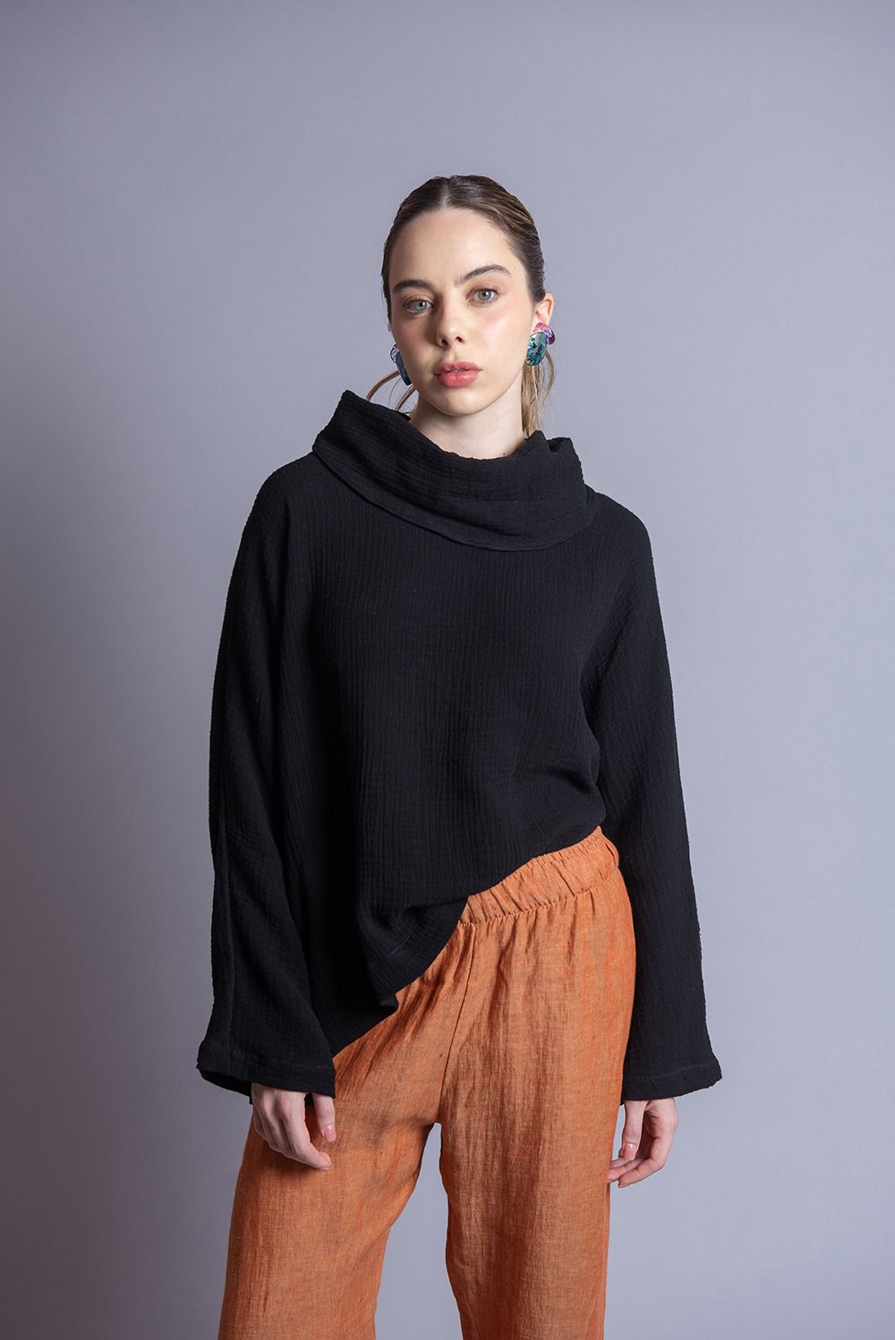 Pantalon en color avena, resorte en cintura, ancho y olan en piernas, queda a la cintura alta