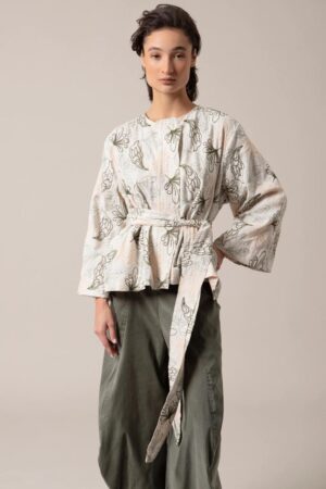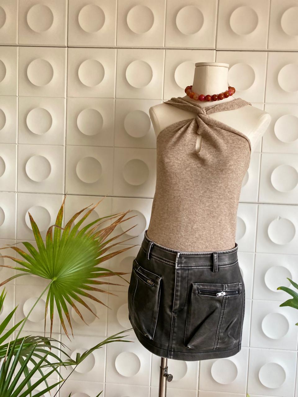 Saco en vinipiel, corto, con un botón al frente, forrado, con hombreras