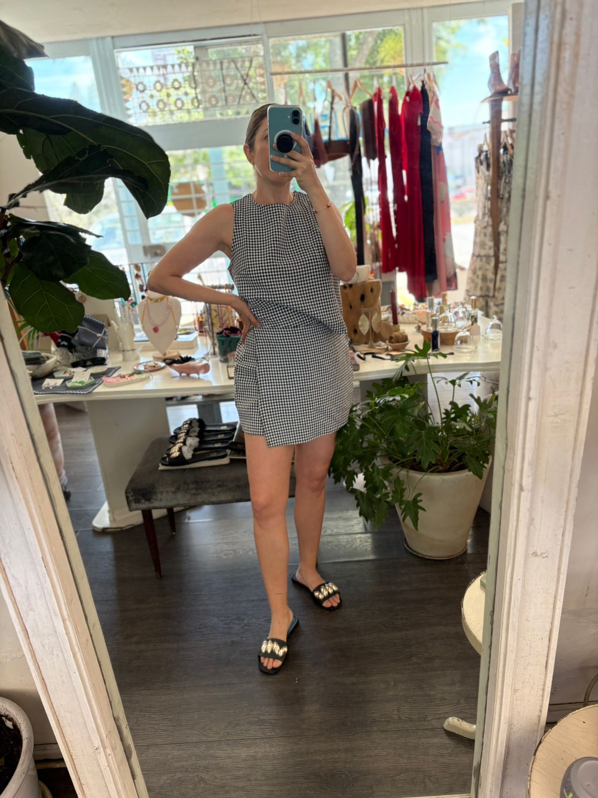 Set de blusa y skort , short con falda en tela cuadros
