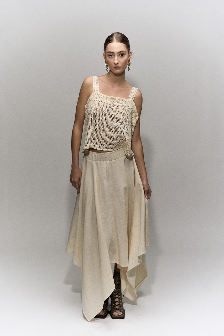 Crop top en color avena , lino 100%, tirantes ajustables, y en espalda resorte para ajustar el ancho de espalda.