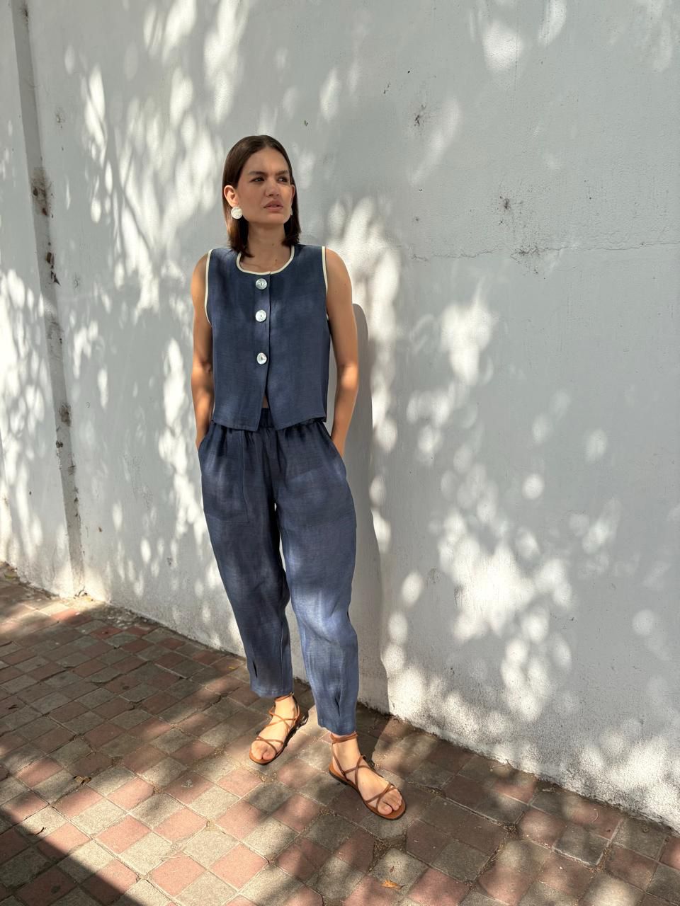 Blusa en Lino con detalle en color hueso , 3 botones de concha grande