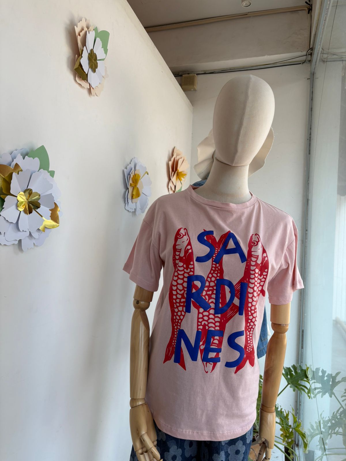 Camiseta en color rosa con estampado de sardinas