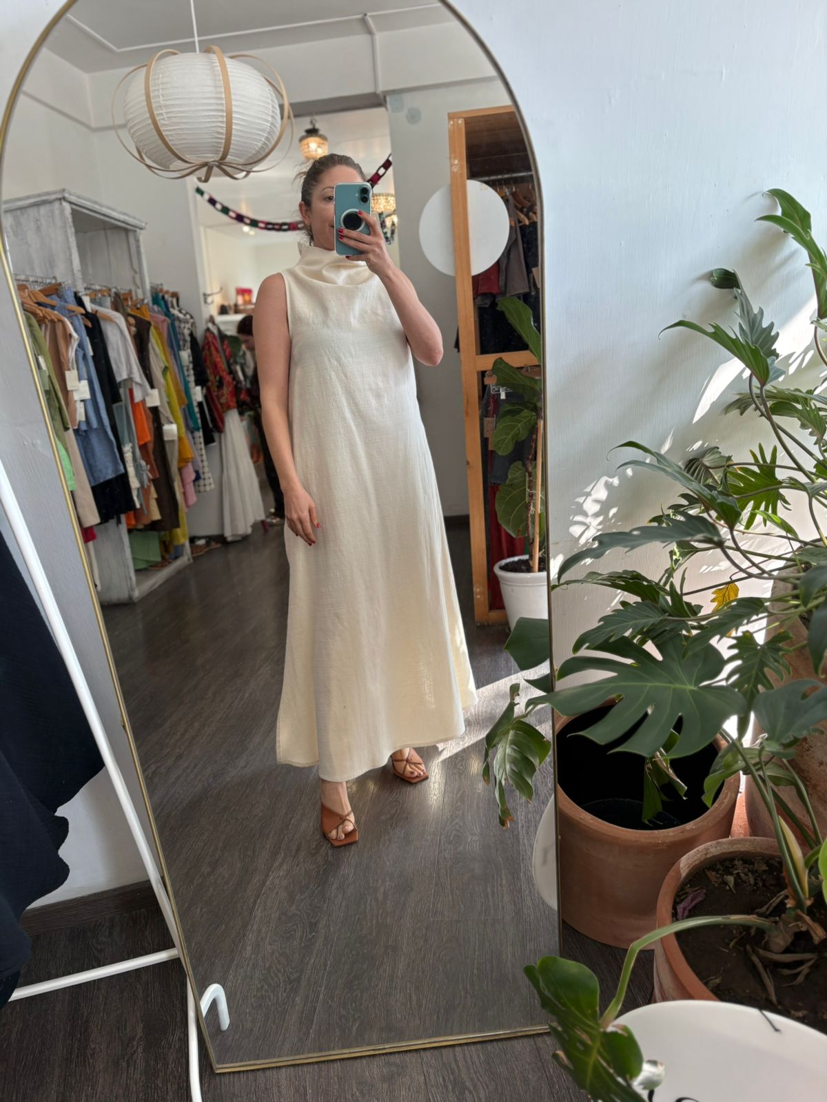 Vestido en largo , sin mangas en algodón 100% bolsillos a los lados y cuello alto
