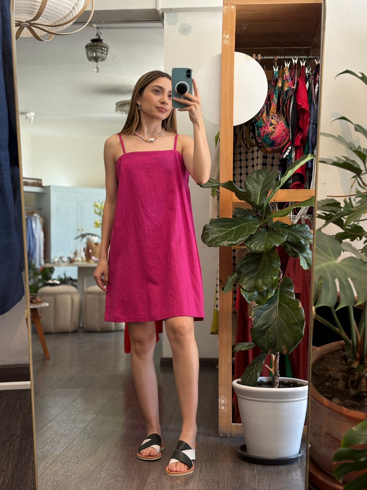 Vestido en Lino italiano , color roda bugambilia