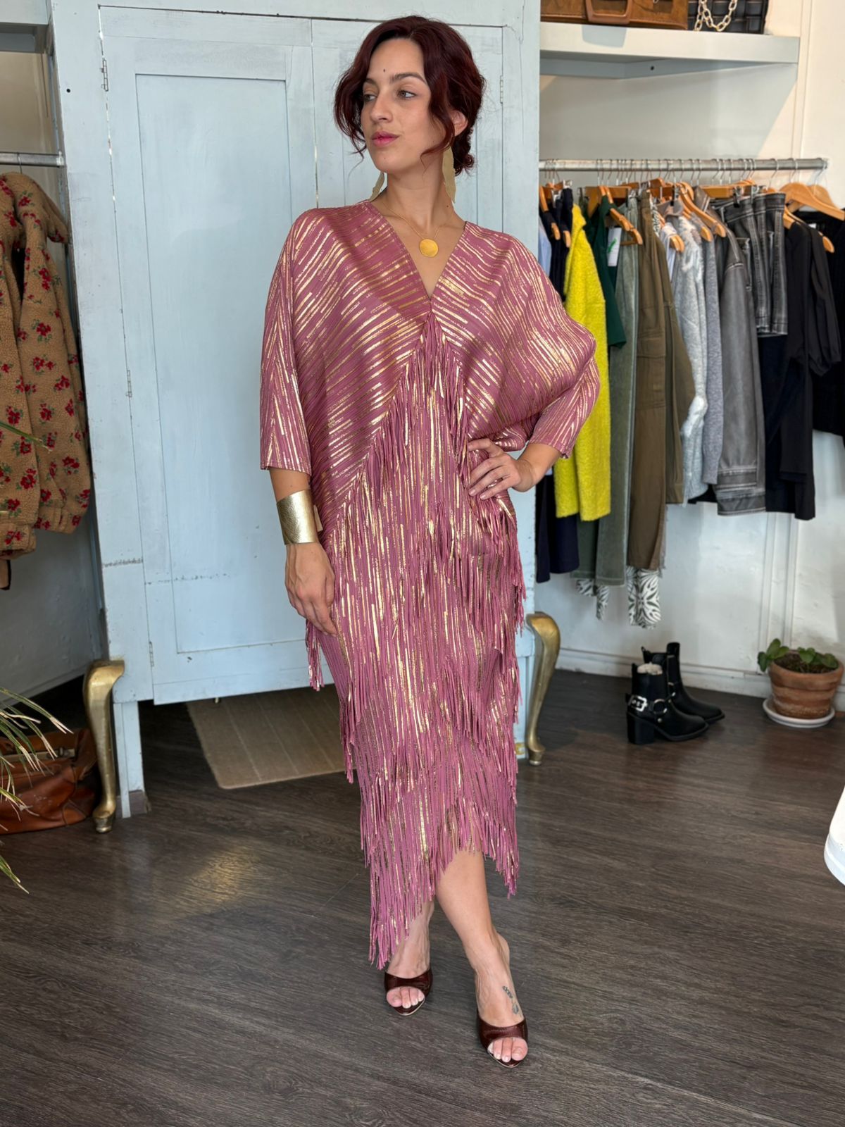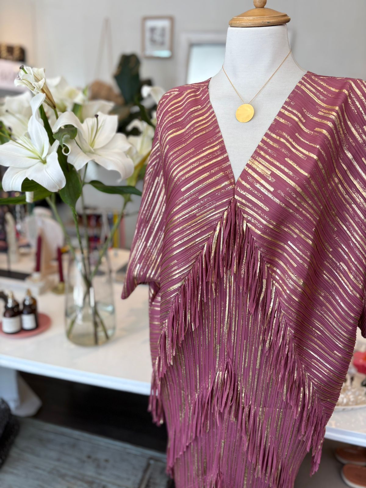 Vestir cuello V , manga 3/4 tela corrugada , detalle de tiras Milas tela en frente y espalda