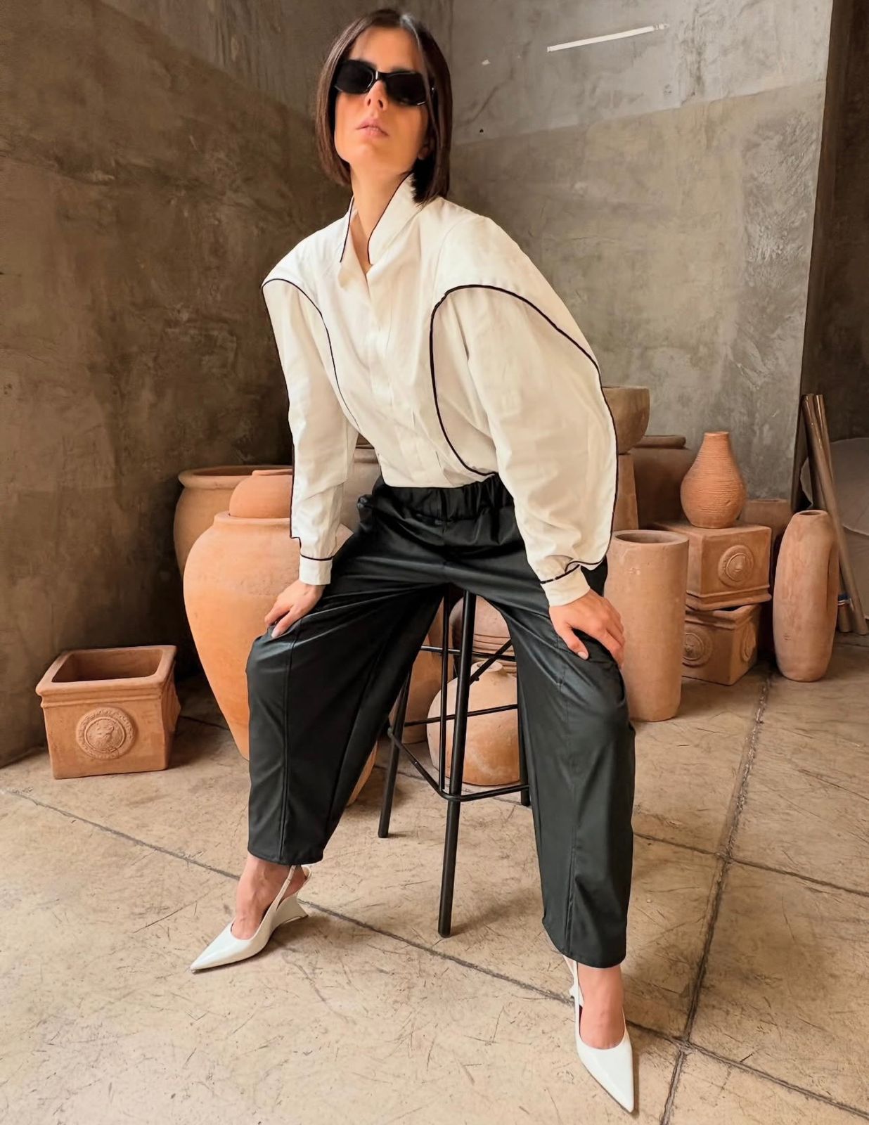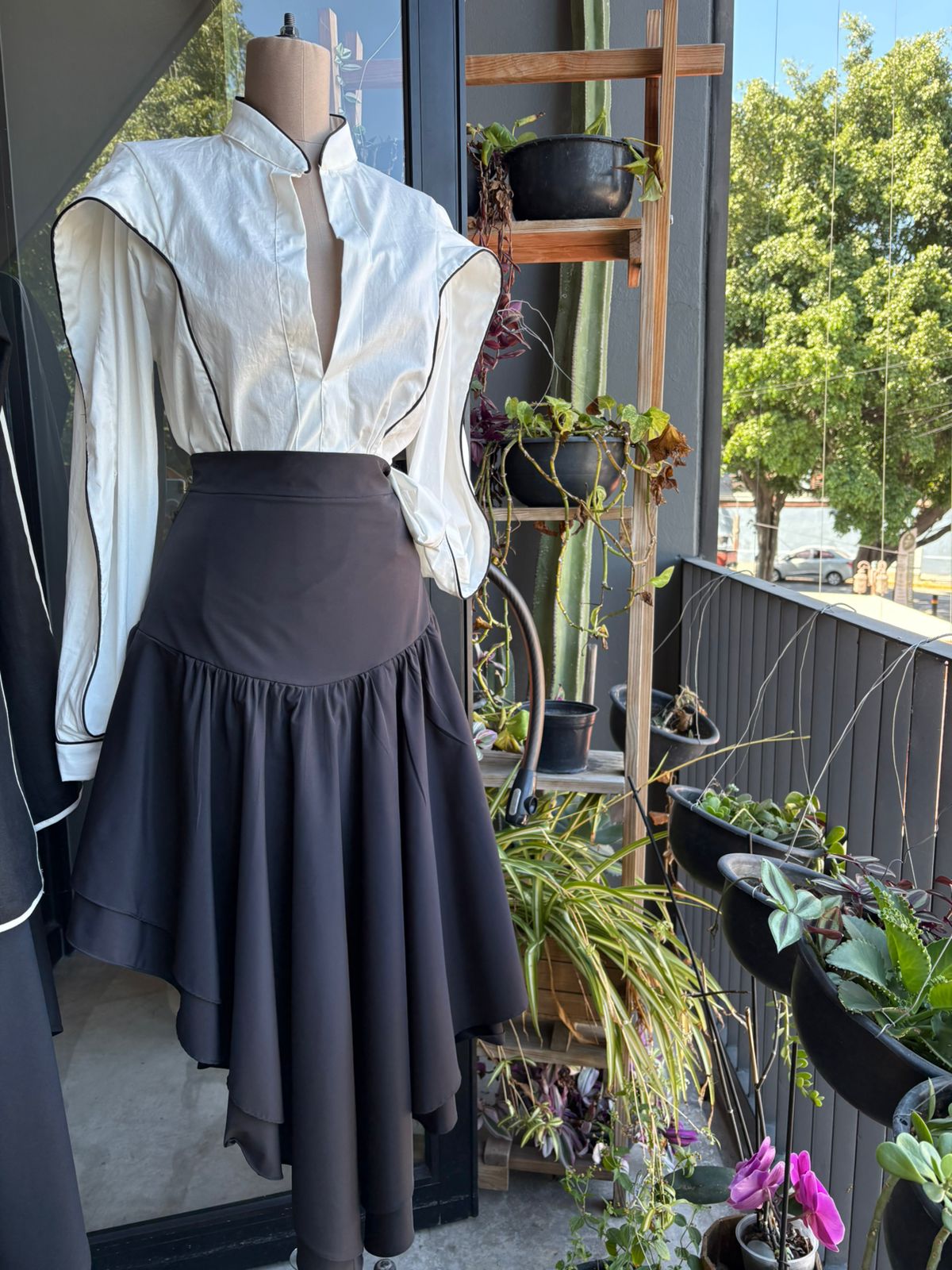 Camisa de algodón con detalles en negro , manga larga y cuello